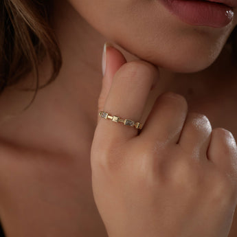 Baget Taş Detaylı Geometrik Yüzük
