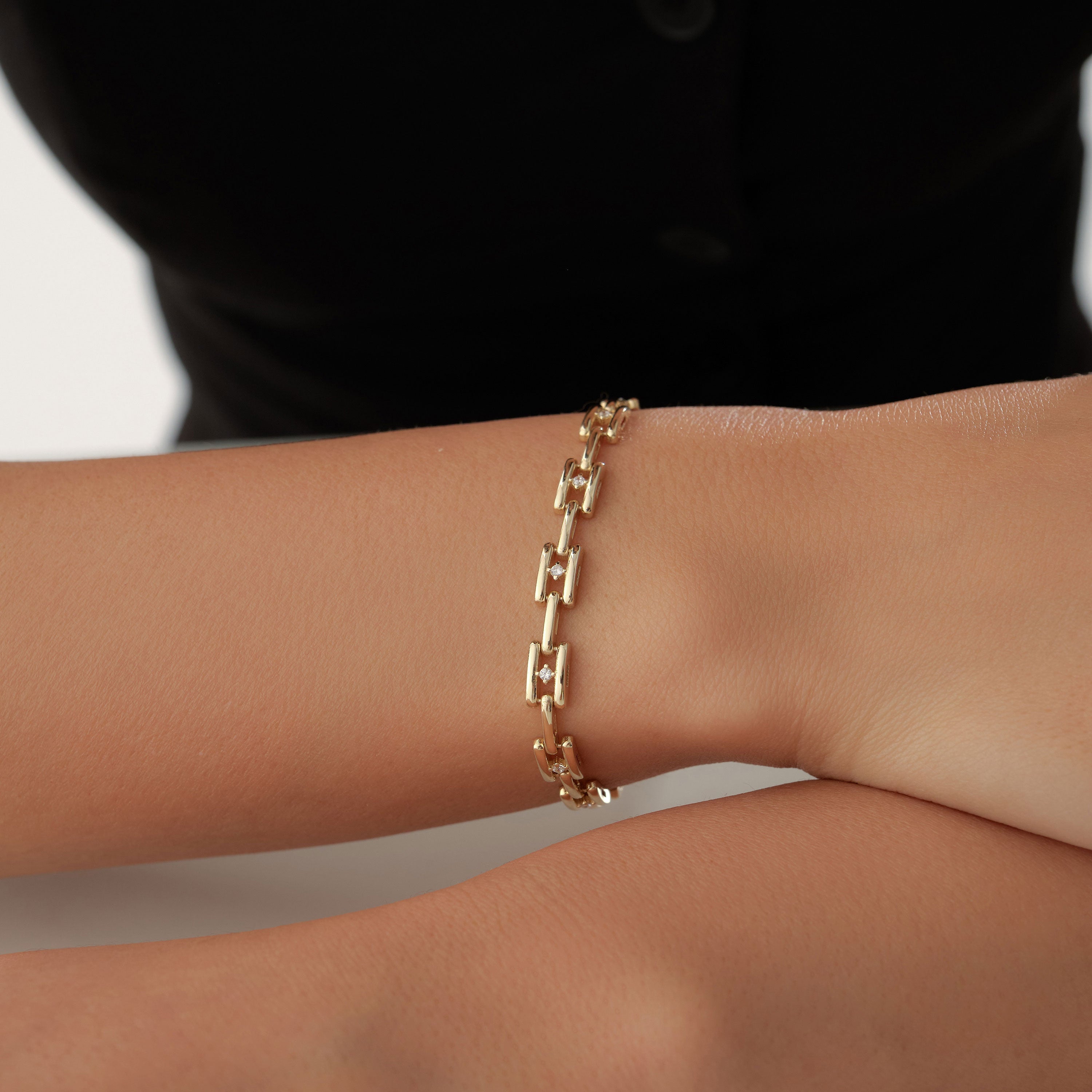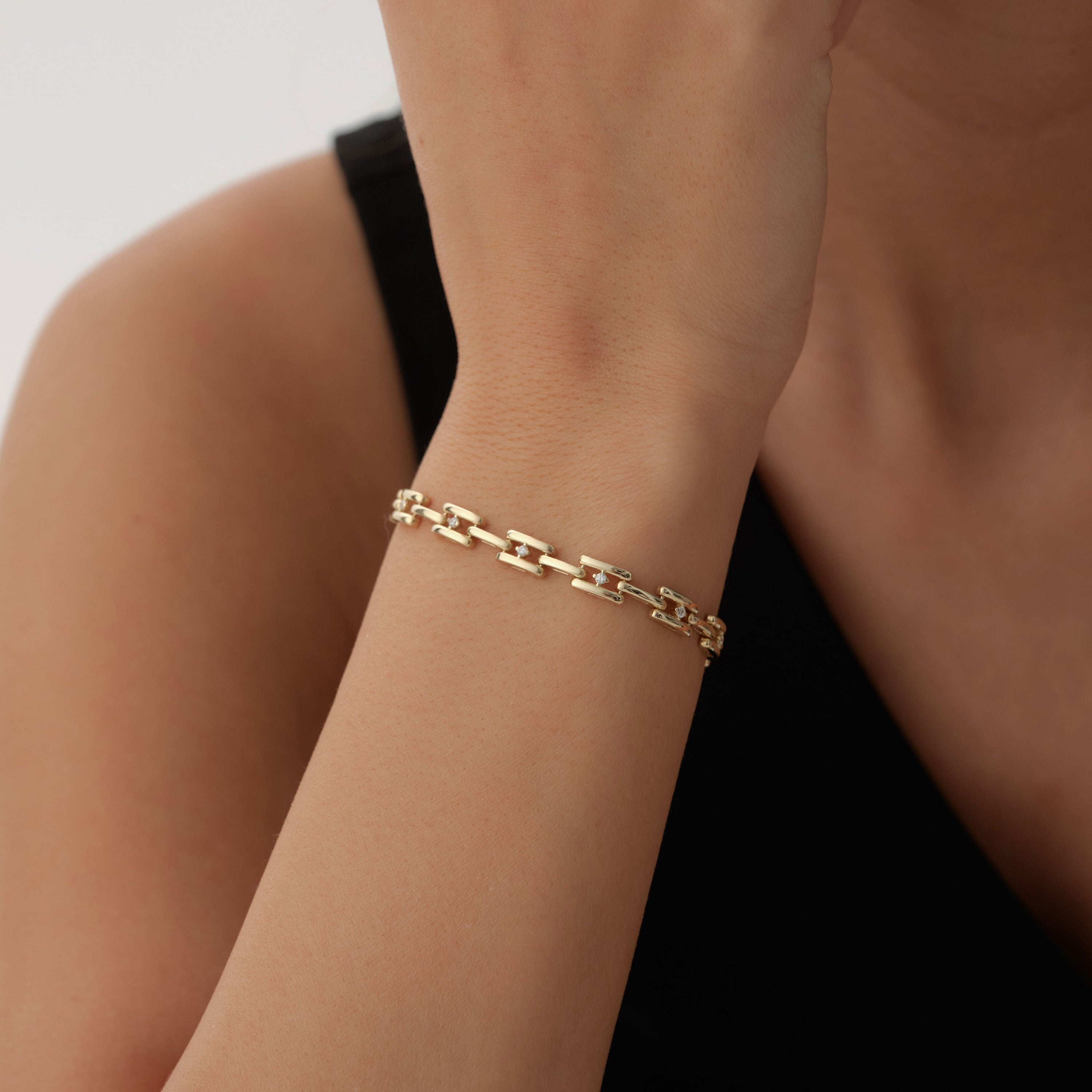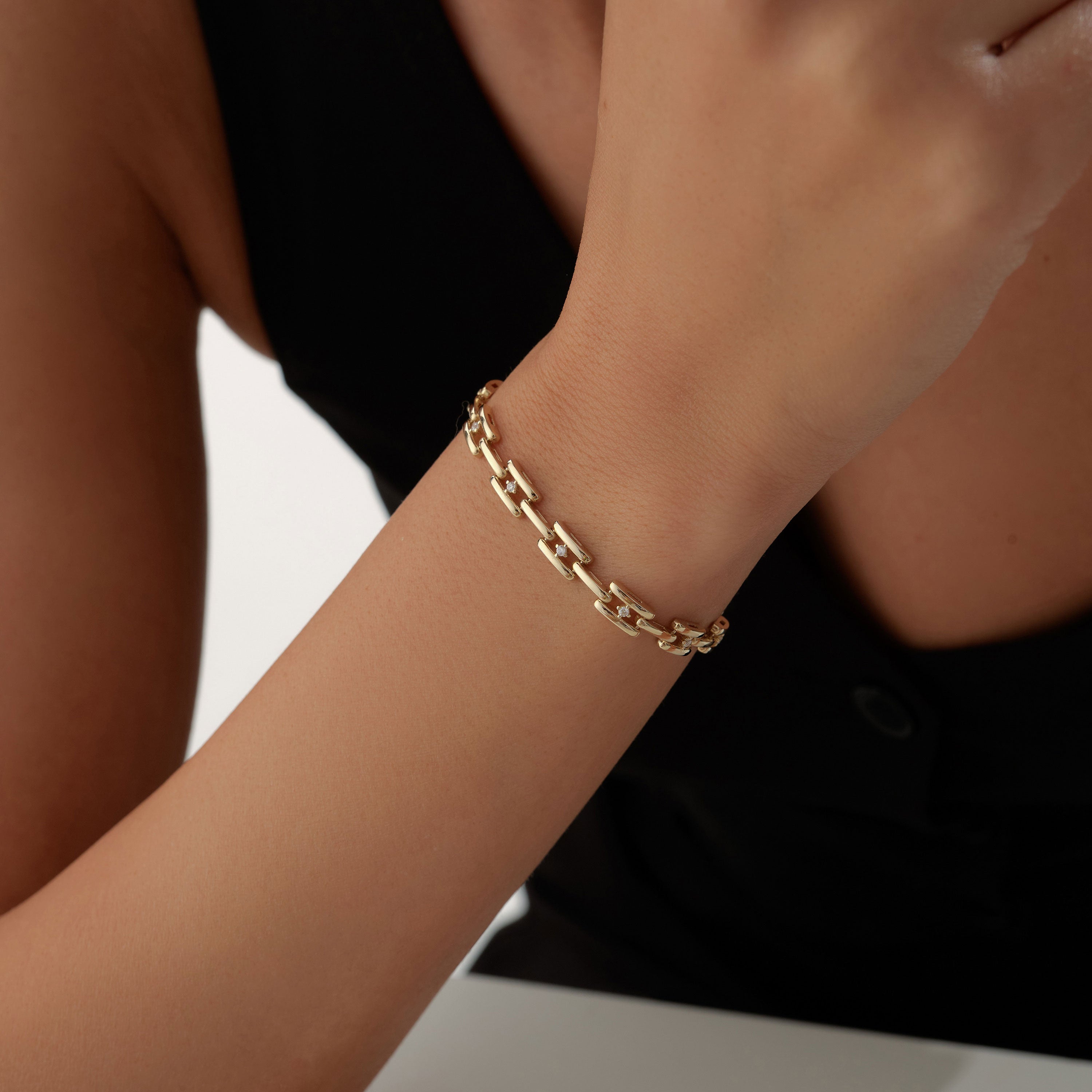 Taş Detaylı Kare Zincir Bileklik